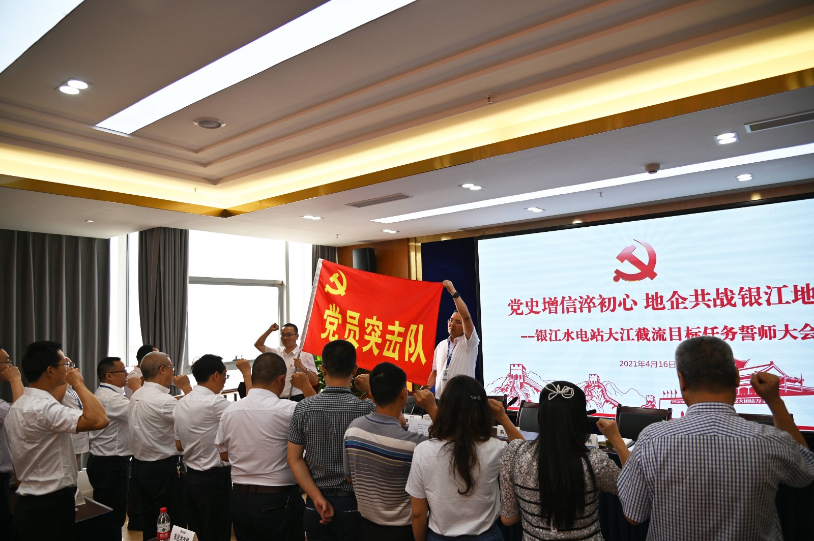 會上,全體參會人員共同學(xué)習(xí)了市委書記張正紅在市級領(lǐng)導(dǎo)干部和縣級主要負(fù)責(zé)同志讀書班暨市委理論學(xué)習(xí)中心組專題學(xué)習(xí)(擴大)會議上的講話精神;蔡承德宣讀了銀江水電站項目建設(shè)黨員突擊隊人員名單;徐孝剛與陳康共同向黨員突擊隊授旗并簽訂目標(biāo)承諾書;全體突擊隊隊員在隊旗前進行了莊重宣誓。