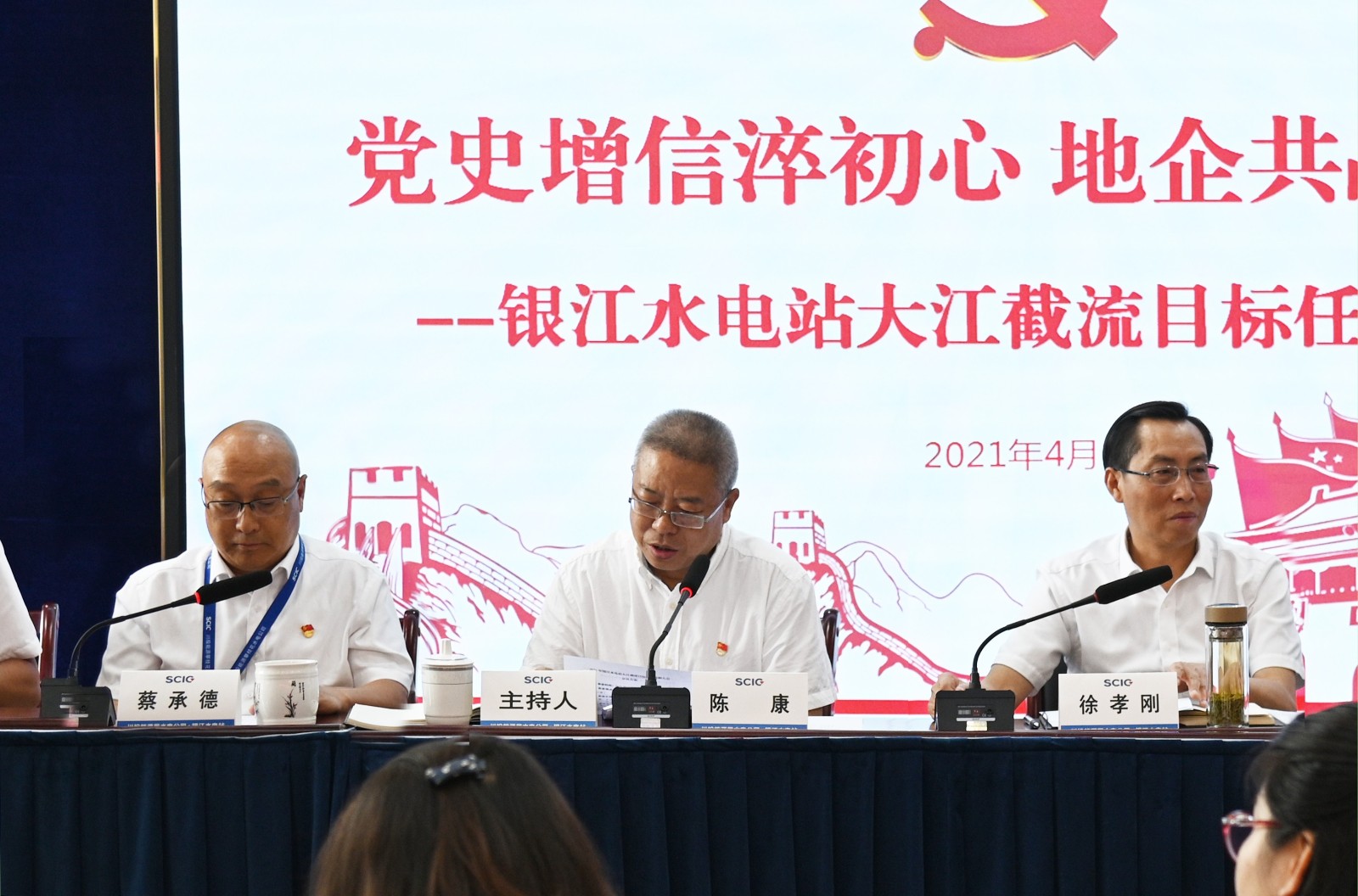 會議由東區(qū)區(qū)委常委、政法委書記、銀江水電站項目推進領(lǐng)導(dǎo)小組常務(wù)副組長陳康主持,川投能源副總經(jīng)理、攀水電公司黨總支書記、董事長徐孝剛,黨總支副書記、總經(jīng)理蔡承德,副總經(jīng)理周軍及公司黨員代表和東區(qū)政府相關(guān)部門等共計40 余人參會。
