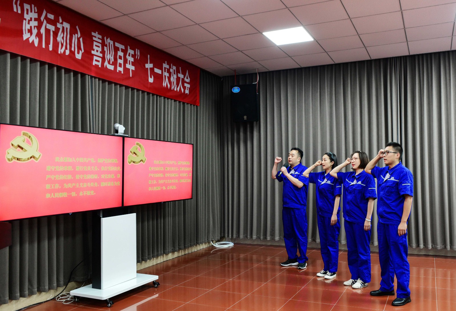 慶祝大會(huì)在雄壯的國(guó)歌聲中正式開始。大會(huì)首先由公司黨委書記、董事長(zhǎng)楊濤帶領(lǐng)三名新黨員在鮮紅的黨旗下進(jìn)行莊嚴(yán)的入黨宣誓,參會(huì)的全體黨員也和新黨員一起重溫了入黨誓詞。時(shí)刻提醒我們要始終保持共產(chǎn)黨員不忘初心、牢記使命的優(yōu)秀品質(zhì)。