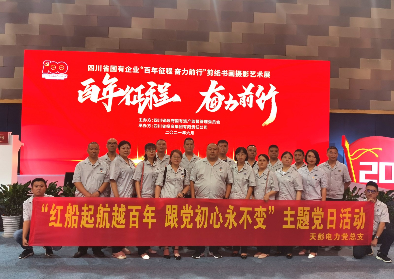 為扎實有效推進黨史學習教育,6月22日下午,黨總支書記、總經理陳忠?guī)ьI天彭電力黨員干部及關鍵崗位人員前往四川川投國際網球中心,組織開展以參觀學習四川省國有企業(yè)“百年征程 奮力前行”剪紙書畫攝影藝術作品展為主要形式的“紅船啟航越百年 跟黨初心永不變”主題黨日活動。