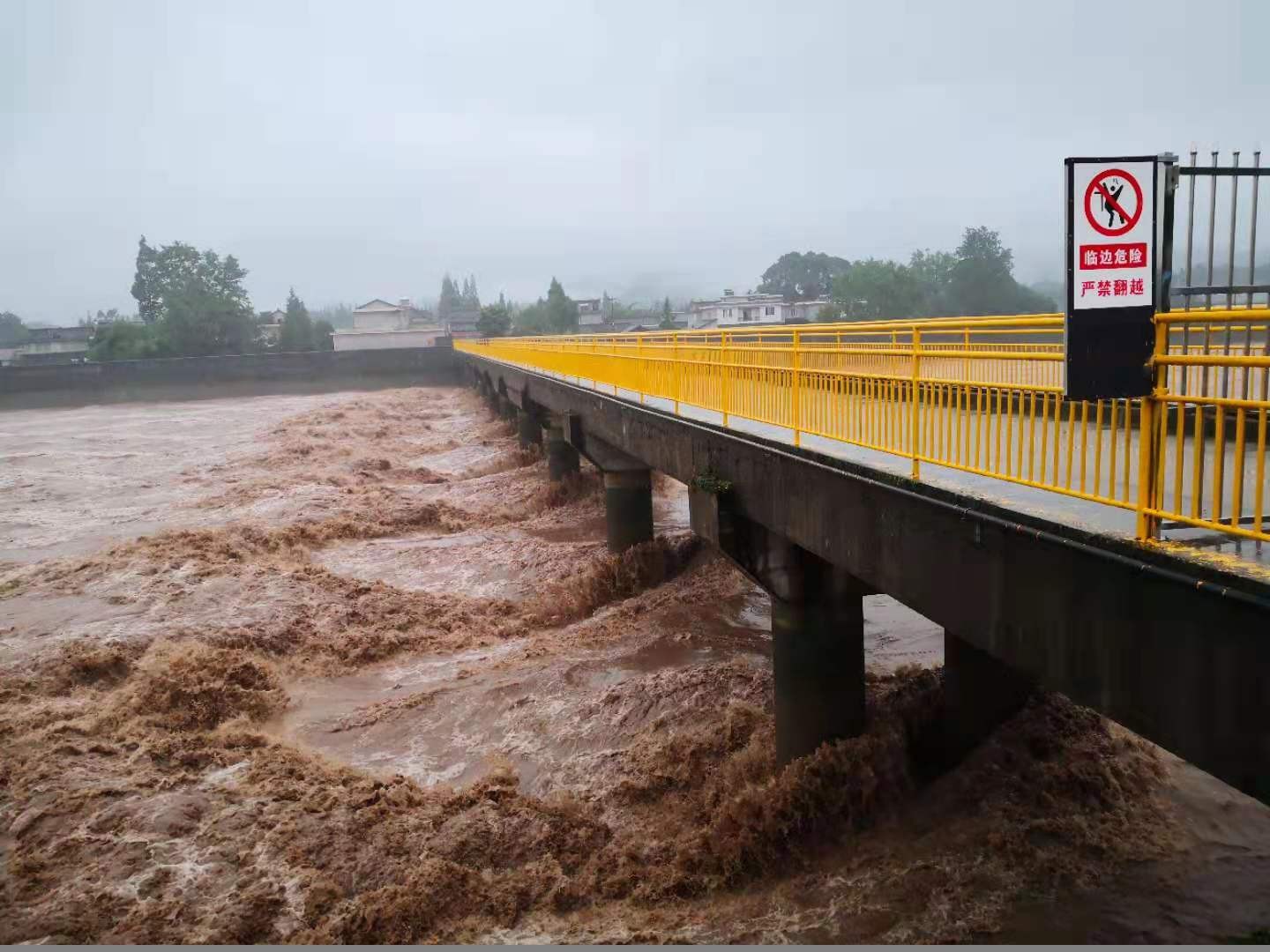 8月18日凌晨,青衣江上游至百花灘電廠強(qiáng)降雨一直持續(xù),電廠組織各部門及時(shí)會(huì)商研判,第一時(shí)間提前騰庫,6:31,電廠停機(jī)避峰,組織人員開展巡視檢查,對(duì)重點(diǎn)部位、重點(diǎn)區(qū)域加強(qiáng)監(jiān)測,在預(yù)判流量將達(dá)到8000m2/s前拆除了尾水渠2號(hào)橋橋梁兩側(cè)的防護(hù)欄桿,并安排人員在尾水渠2號(hào)橋兩側(cè)拉設(shè)了警戒線,禁止人員從2號(hào)橋通過。9:55最大洪峰流量(9880 m3/s)安全通過百花灘電廠。