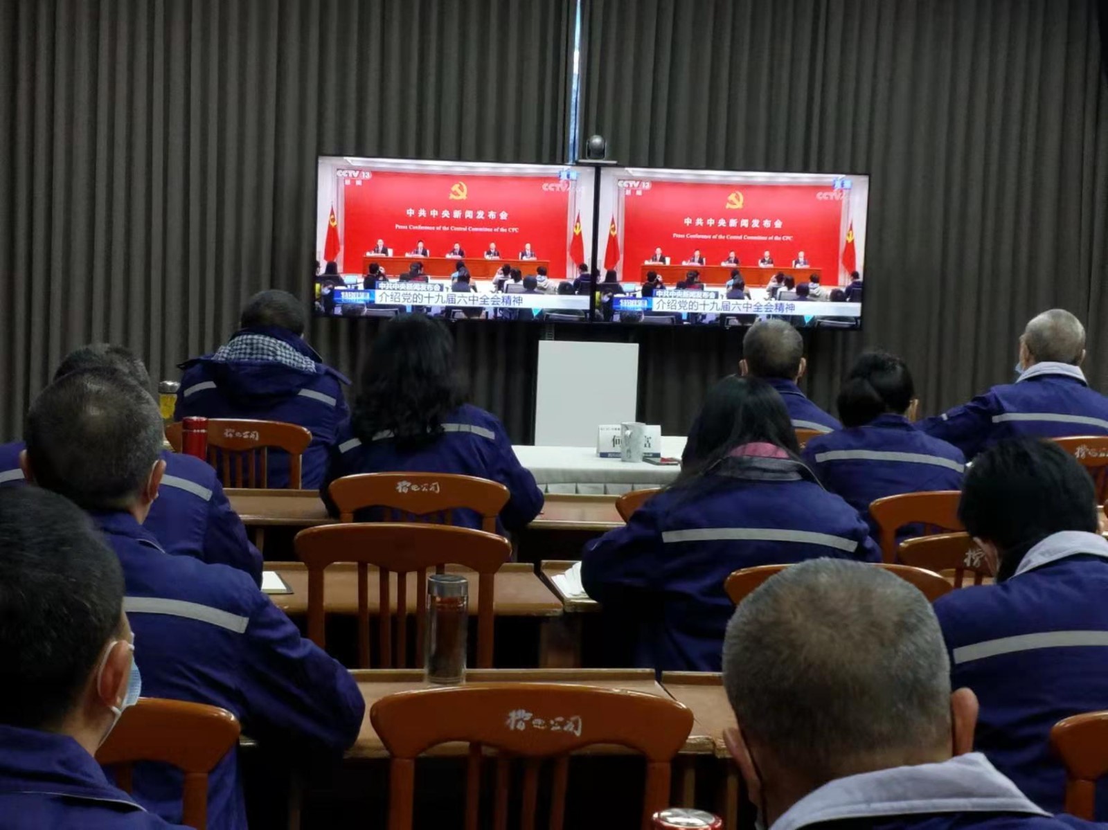 11月12日,川投電力根據(jù)集團(tuán)黨委、川投能源黨委要求,同時(shí)嚴(yán)格按照疫情防控要求,組織班子成員集中觀看、本部和各電廠全體員工共100余人自主收看等多形式收聽(tīng)收看中共中央十九屆六中全會(huì)精神新聞發(fā)布會(huì)。