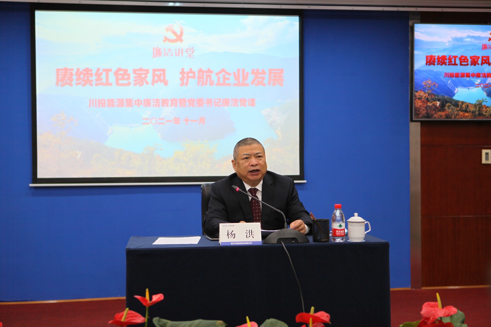 為貫徹落實(shí)中央關(guān)于全面從嚴(yán)治黨部署和要求,切實(shí)推進(jìn)公司黨風(fēng)廉政建設(shè),推動(dòng)“好風(fēng)傳家”工作落實(shí)落細(xì),2021年11月25日上午, 川投能源黨委組織召開(kāi)了2021年集中廉潔教育會(huì),公司黨委書(shū)記、副董事長(zhǎng)、總經(jīng)理?xiàng)詈橐浴百s續(xù)紅色家風(fēng),護(hù)航企業(yè)發(fā)展”為題給公司黨員干部講授廉潔黨課,并組織觀(guān)看了由中央紀(jì)委國(guó)家監(jiān)委宣傳部、中央廣播電視總臺(tái)聯(lián)合制作的電視專(zhuān)題片《正風(fēng)反腐就在身邊》之《嚴(yán)正家風(fēng)》。公司黨委副書(shū)記、工會(huì)主席冉蘭平主持會(huì)議。